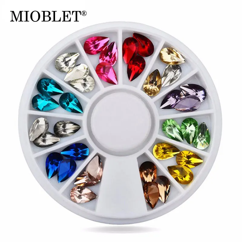 المنتجات ذات الصلة ل Nails Art و حار بيع 36 قطعة/المجموعة بريق قطرة الماء الراين مسمار فن الديكور عجلة 5x8 ملليمتر 3d تصميم سحر مسمار نصائح الكريمة الحجارة التبعي