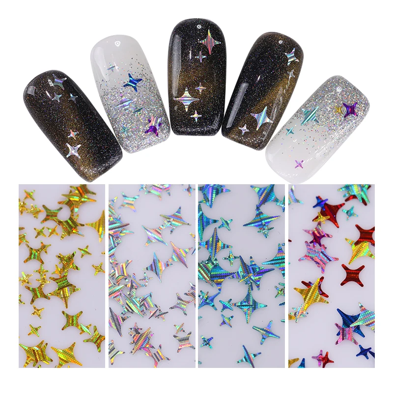معرض ل نيكول مذكرات المجسم مسمار الترتر الذهب والفضة أربعة زاوية النجوم الليزر متعددة حجم مسمار الفن 3d الديكور 1 مربع