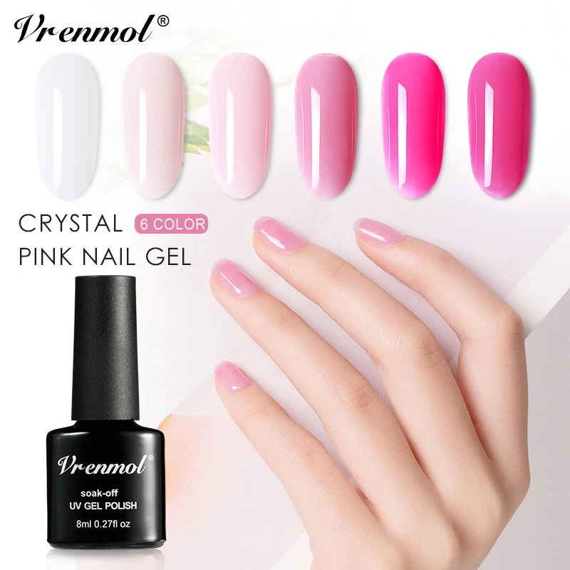 استعارات من Vrenmol 6 ألوان الوردي سلسلة الفرنسية مانيكير مسمار البولندية جيل أظافر بالرسومات بالأشعة فوق البنفسجية ورنيش الهجين عارية السكر الدهانات الاك...