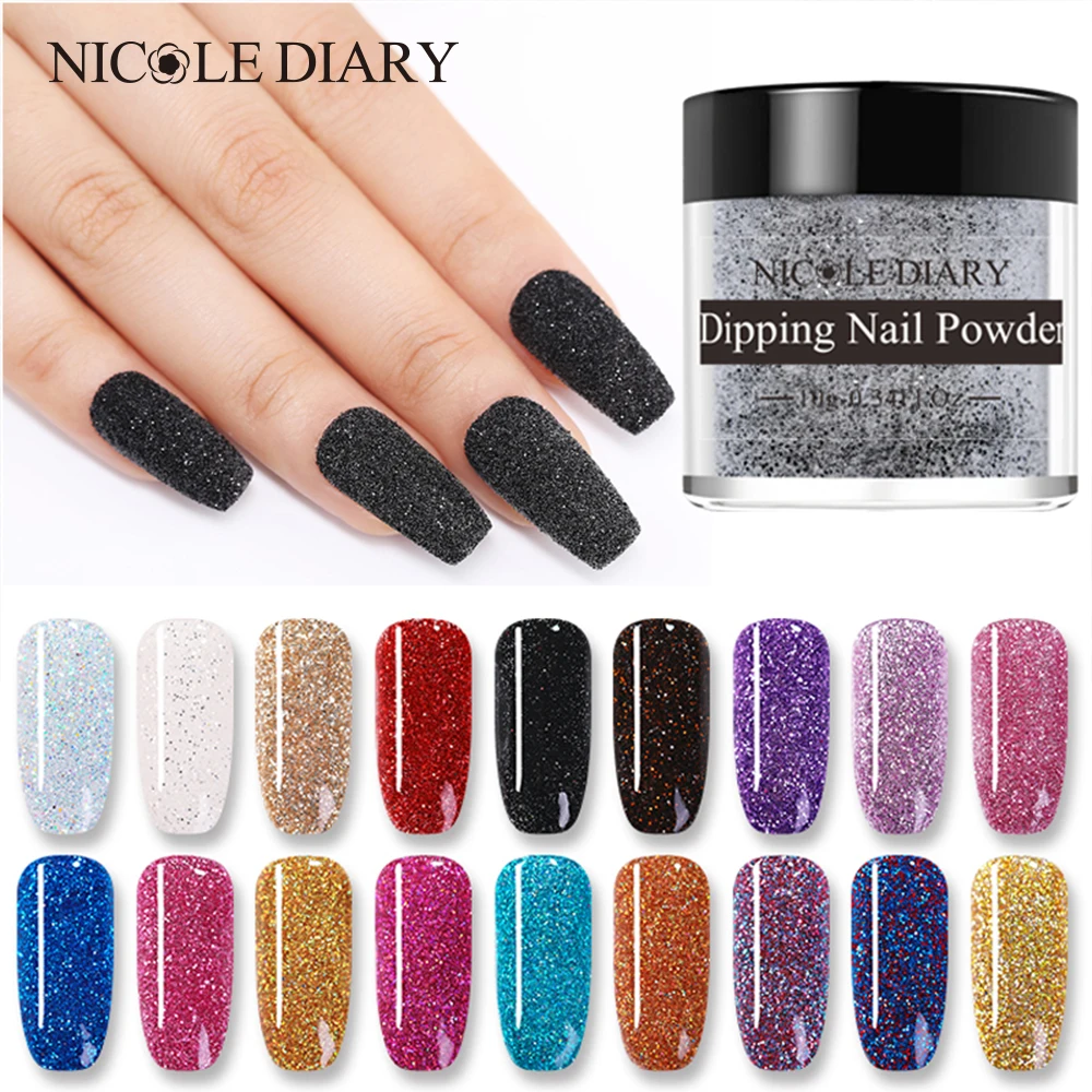 شراءمعلومات اضافية نيكول يوميات 10g غمس مسمار مسحوق نظام الطبيعية الجافة الملونة الثلاثية الأبعاد لامع مسمار الفن بريق مسحوق مانيكير تصميم