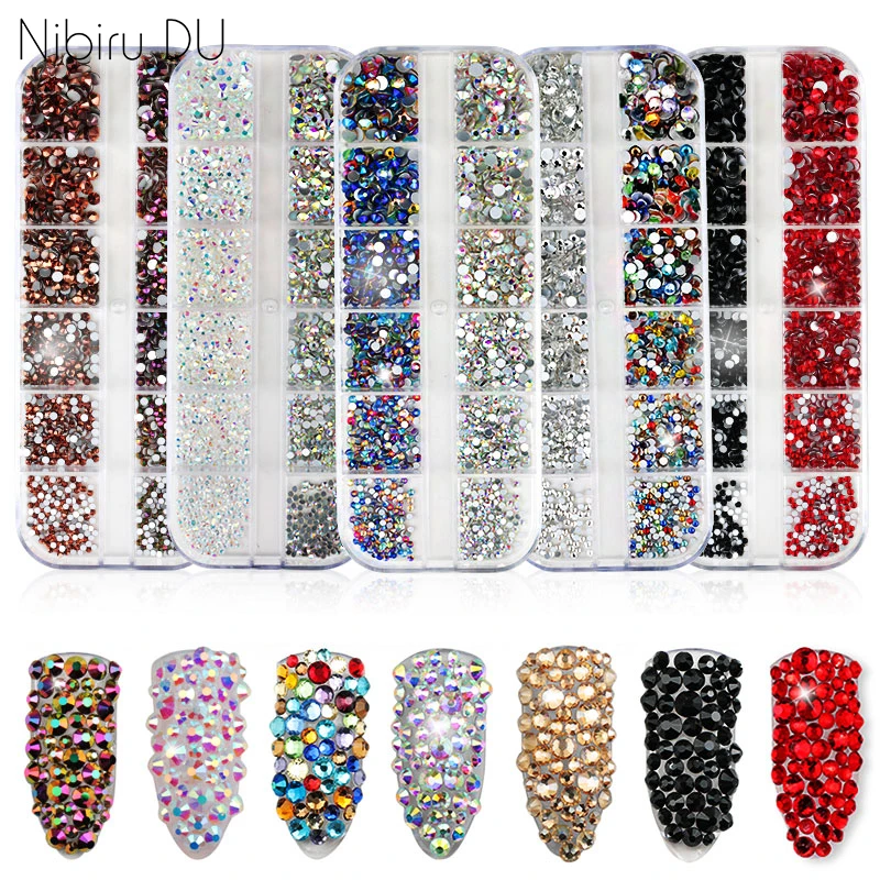 استعارات من 1440 قطعة متعددة حجم زجاجة طلاء أظافر الراين بلورات ستراس التقسيم مختلط حجم DIY مانيكير 3D رسومات أظافر حجر الراين زينة