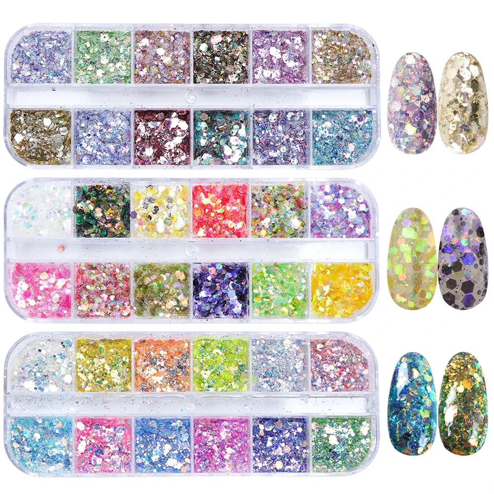 معرض ل 1 مجموعة لامعة مزيج لون مسمار الفن يتلألأ لالمسامير رقائق كسر مسدس الثلاثية الأبعاد مجموعة الأشعة فوق البنفسجية هلام البولندية شىء صغير براق...