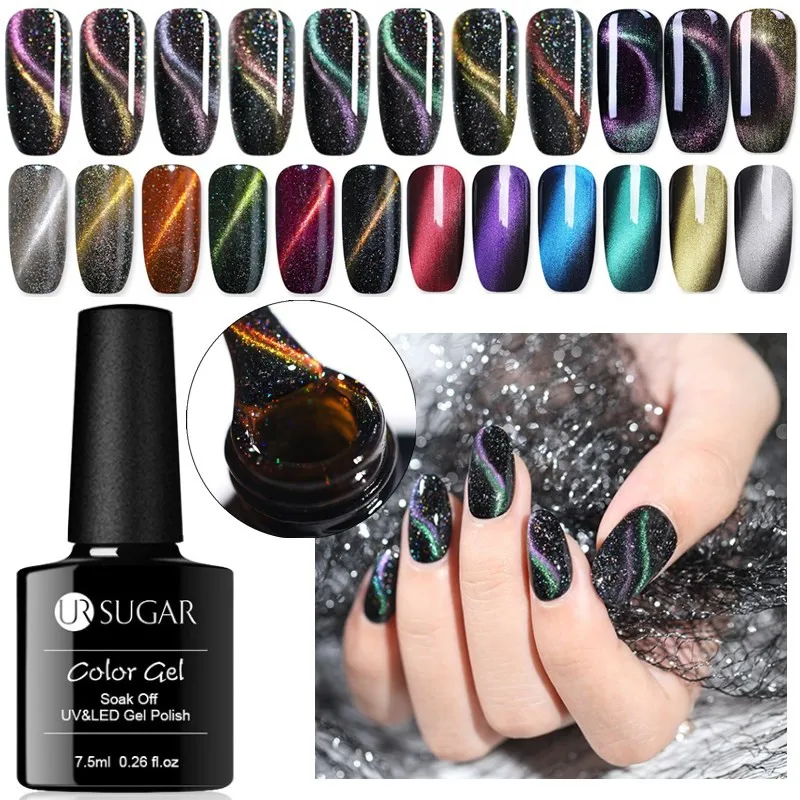 استعارات من اور السكر 7.5 مللي الحرباء القط العين هلام مسمار البولندية نقع معطلة الأشعة فوق البنفسجية LED 3D المغناطيسي هلام ورنيش الليزر التدرج تأثير مسمار...