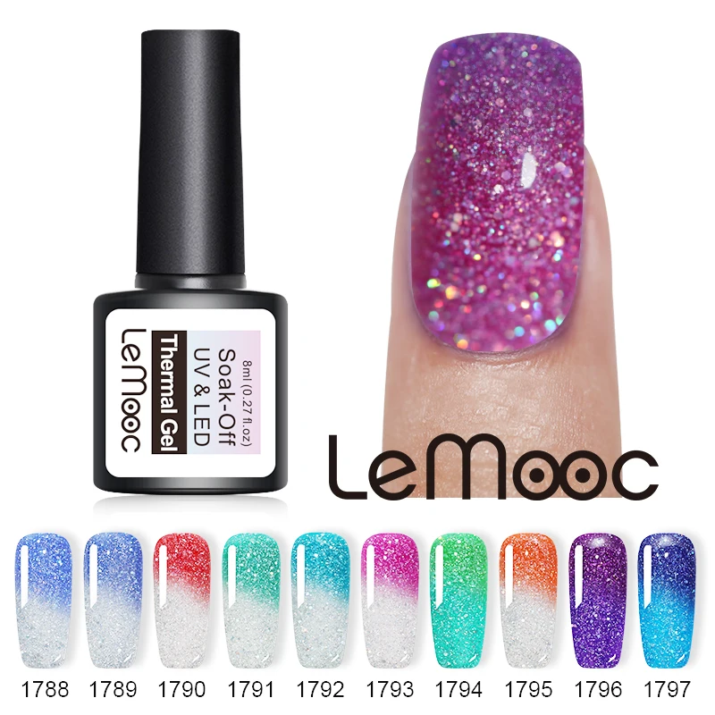 شراءمعلومات اضافية LEMOOC 8 ملليلتر الحرارية قوس قزح مسمار هلام البولندية وميض الثلاثية الأبعاد هلام الورنيش درجة الحرارة تغيير لون نقع قبالة الأشعة فوق البنفسجية...