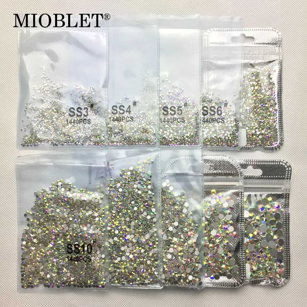 المنتجات ذات الصلة ل Nails Art و سوبر بريق SS3-SS30 1440 قطع كريستال AB شقة عودة مسمار حجر الراين 3D غير الإصلاح مسمار الفن الديكور الزجاج مانيكير اكسسوارات