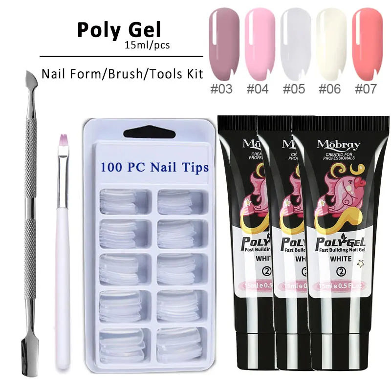 أرغب في شراءمعلومات اضافية 15 مللي 4 قطعة الاكريليك بولي هلام مجموعة تمديد سريع حل UV بناء هلام مسمار شكل مسمار فرشاة فنية مسمار أدوات عدة Polygel مجموعة