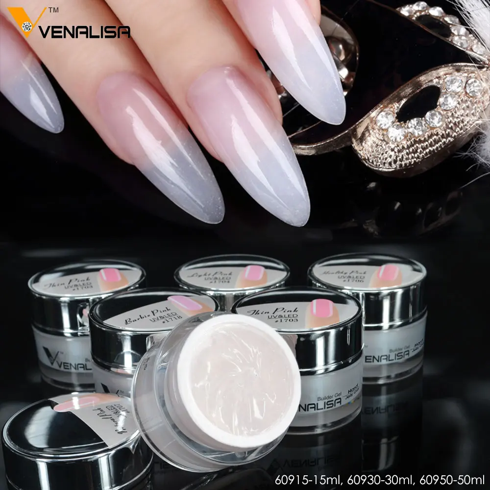 صور ل #60930 VENALISA 30 مللي 24 اللون CANNI مسمار الفن مانيكير واضح الوردي الطبيعي التمويه الصلب هلام منشئ الفرنسية مسمار تمديد هلام