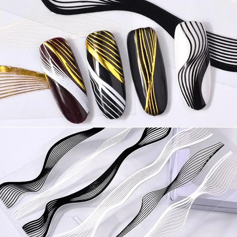 أرغب في شراءمعلومات اضافية مسمار الفن ملصقات الليزر الذهب معدن شريط خط الشريط ذاتية اللصق نقل رقائق الشارات DIY نصائح مانيكير الديكور دروبشيب