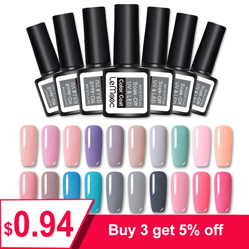 شراءمعلومات اضافية LEMOOC هلام 1 مسمار الفن هلام 8 مللي النقي مسمار اللون الأشعة فوق البنفسجية ملمع أظافر led Gel طويلة الأمد نقع قبالة طلاء هلام ورنيش