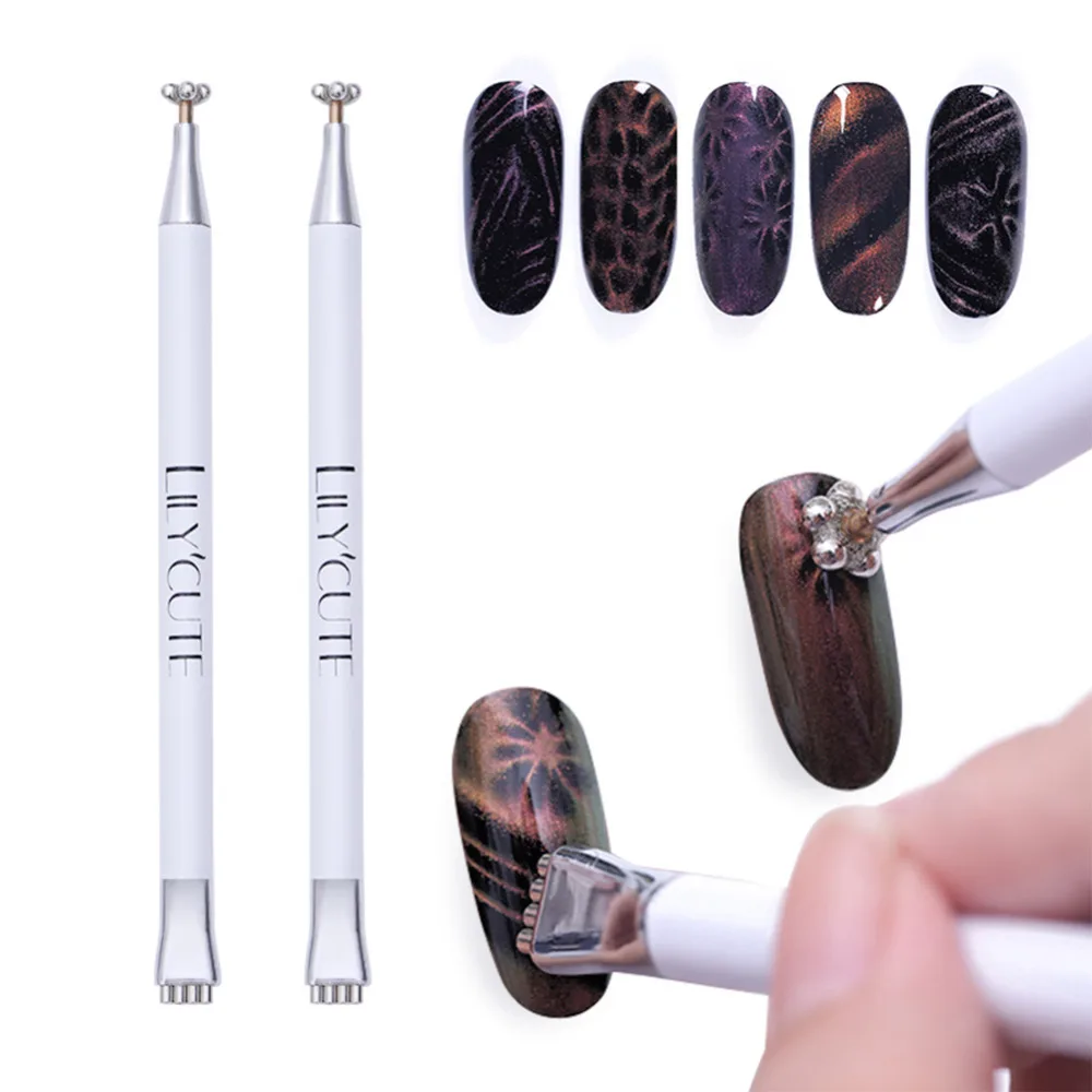 استعارات من LILYCUTE 1 قطعة مسمار الفن المغناطيس عصا مزدوجة برئاسة المغناطيس ل القط العين 3D زهرة الشبكة تأثير قوي قلم مغناطيسي مسمار أدوات