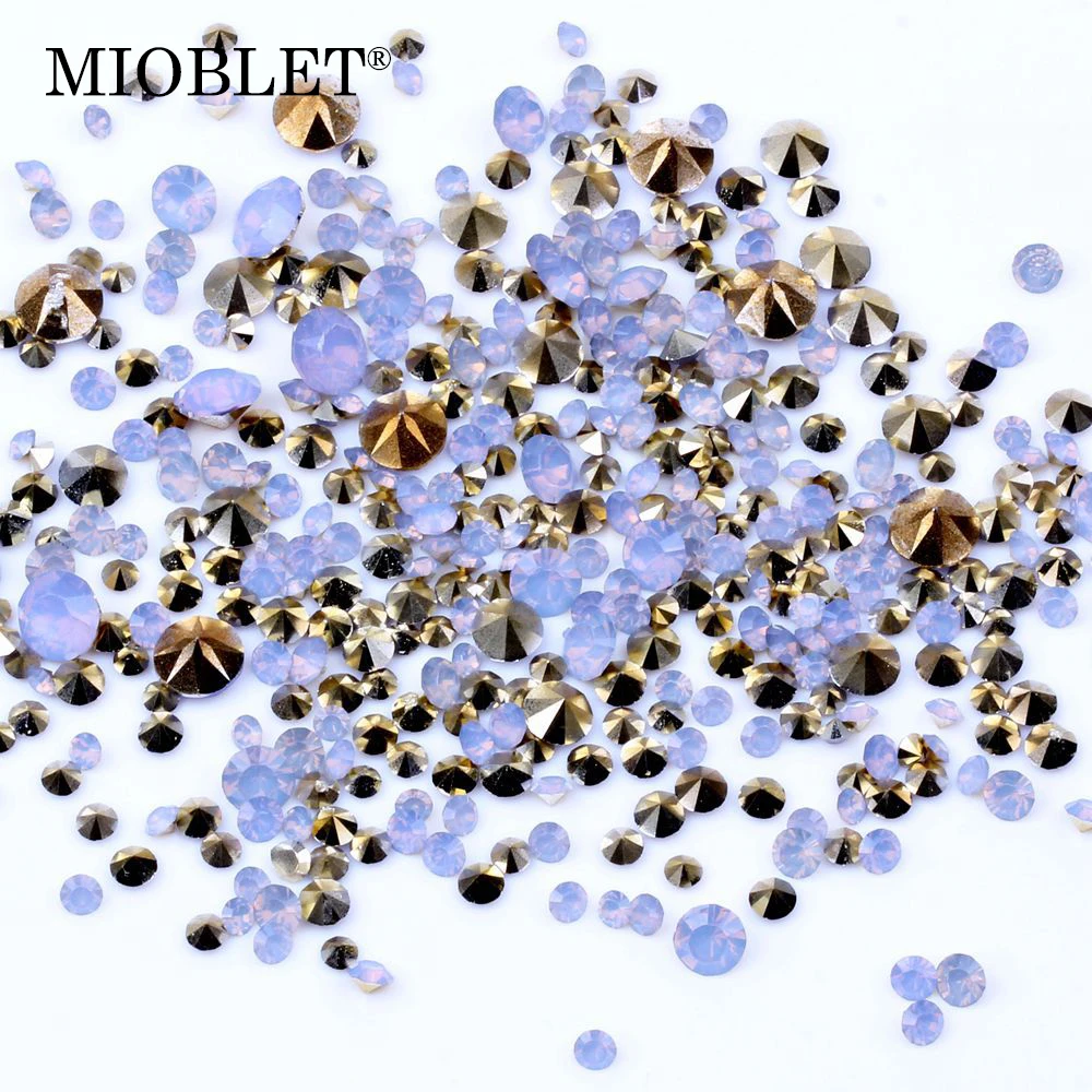 معرض ل 1 حزمة مختلطة حجم 300 قطع أوبال الكريستال مسمار الراين DIY حاد أسفل الأحجار العقيق الأرجواني/العقيق الأصفر 3D مسمار الفن زينة